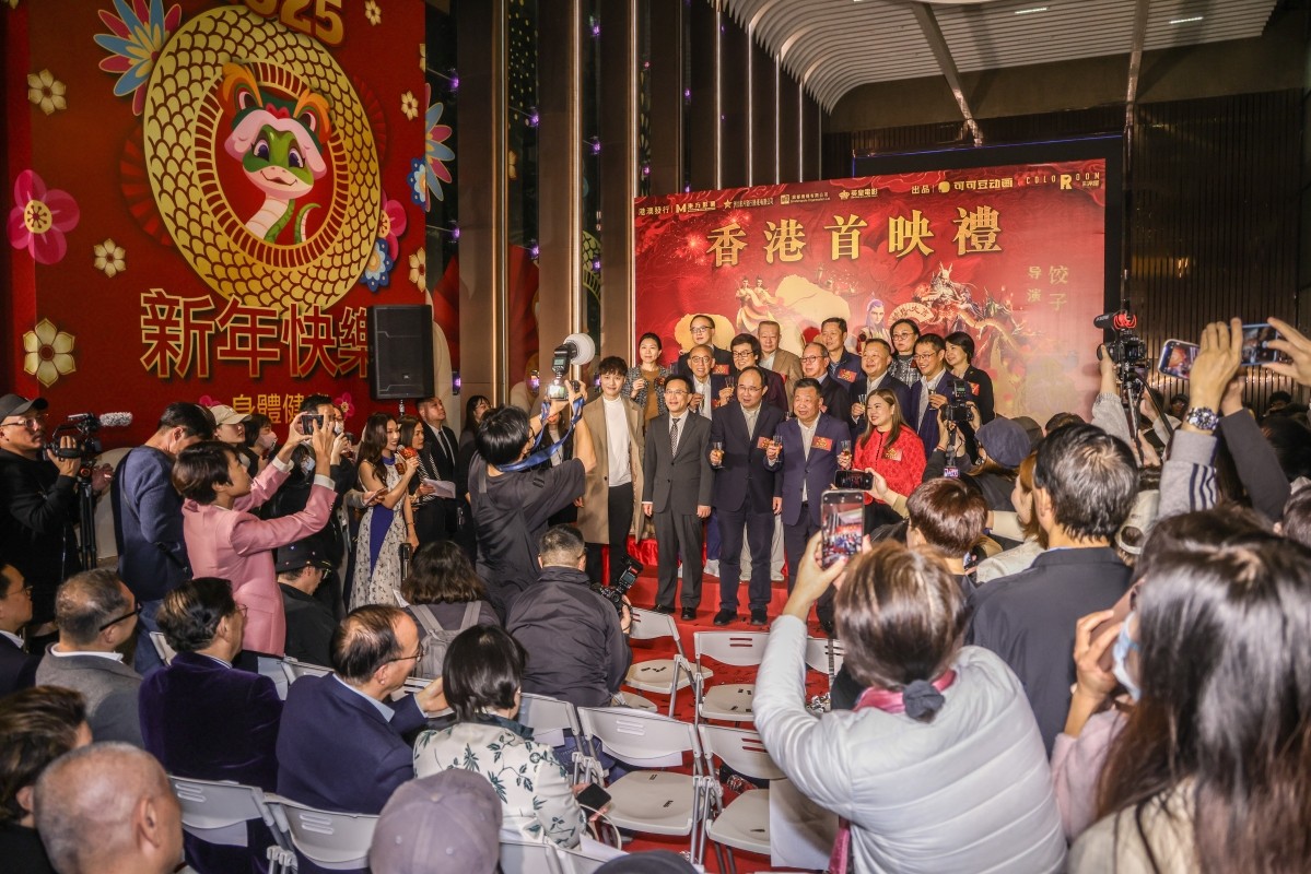 2月18日,《哪吒之魔童鬧海》香港首映禮在銅鑼灣舉行,並將於2月22日在港澳院線上映。圖片來源:香港中通社