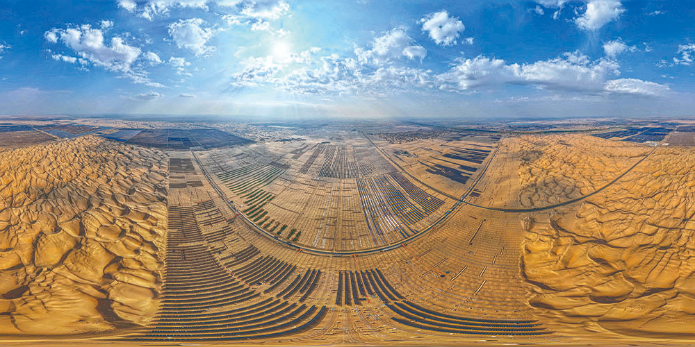 資料圖為2023年10月10日拍攝的建設中的庫布其沙漠鄂爾多斯中北部新能源基地。新華社圖片