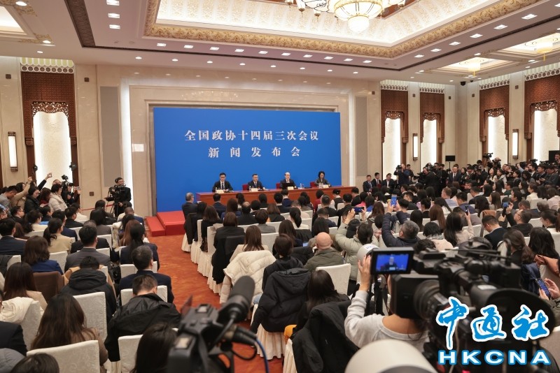 3月3日,全國政協十四屆三次會議新聞發布會在北京人民大會堂舉行。香港中通社圖片