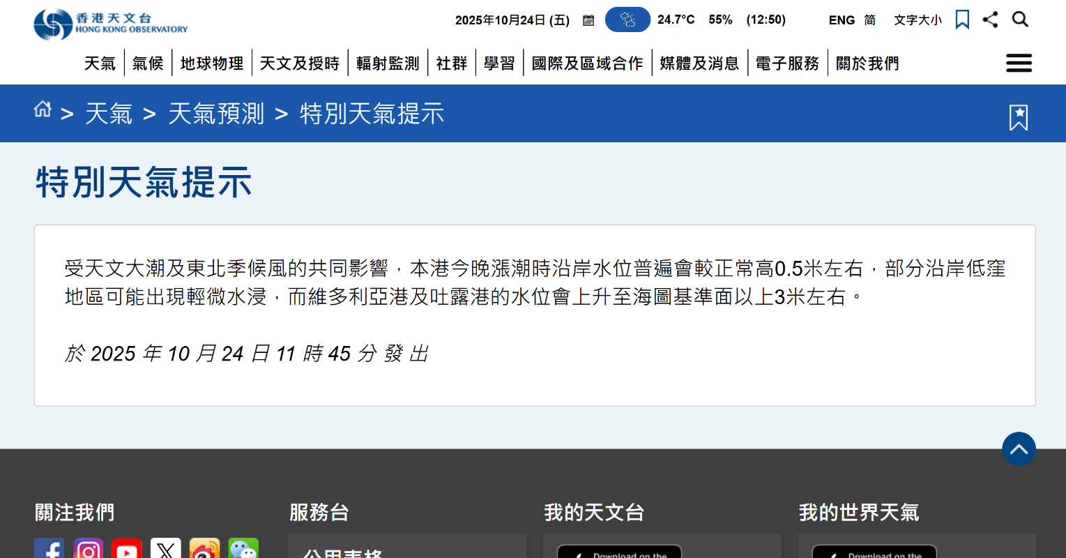 天文台網頁截圖