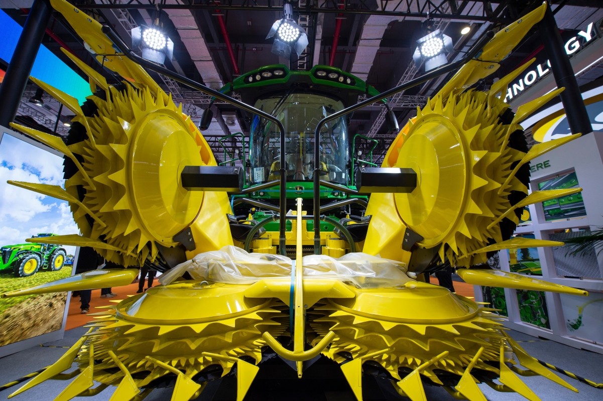 圖為第八屆進博會技術裝備展區中的自走式青貯收穫機 圖片來源:新華社