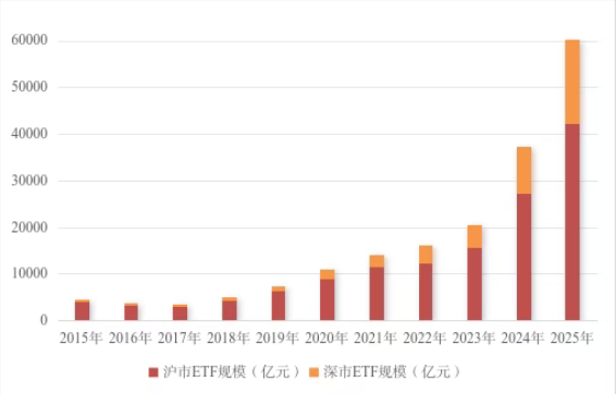 中國滬深兩市ETF規模。圖源:上交所ETF行業發展報告(2026)