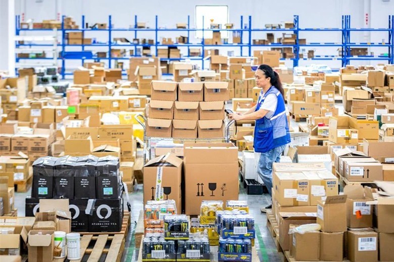 圖為中國一電商倉庫正在整理寄往海外的訂單。新華社資料圖