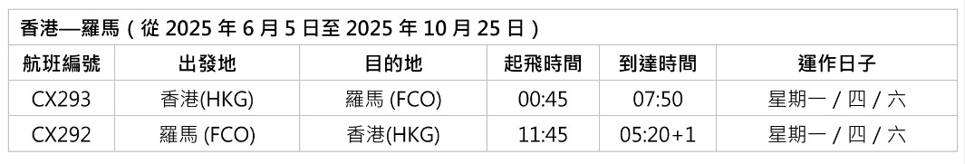 國泰航空將於6月5日重啟香港與羅馬之間的直航服務。